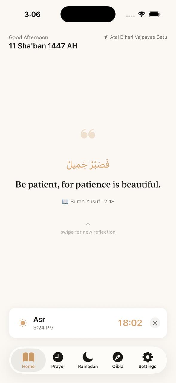 Quick access to prayer times and Islamic quotes right from your home screen or lock screen.